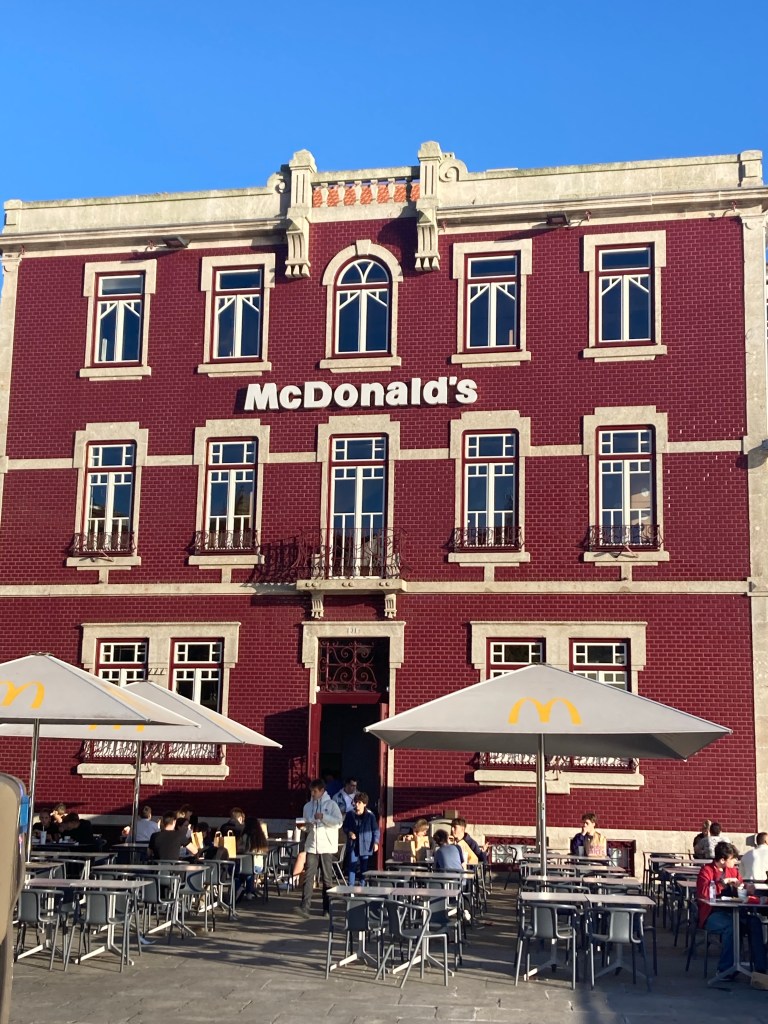 After all the ‘pilgrim’ meals, it is nice to have some fantastic food, lots of fresh fish, including cod. I believe I have had 7 fish dishes in 4 days! Porto is so beautiful that even the fast food restaurants are a feast for the eyes.